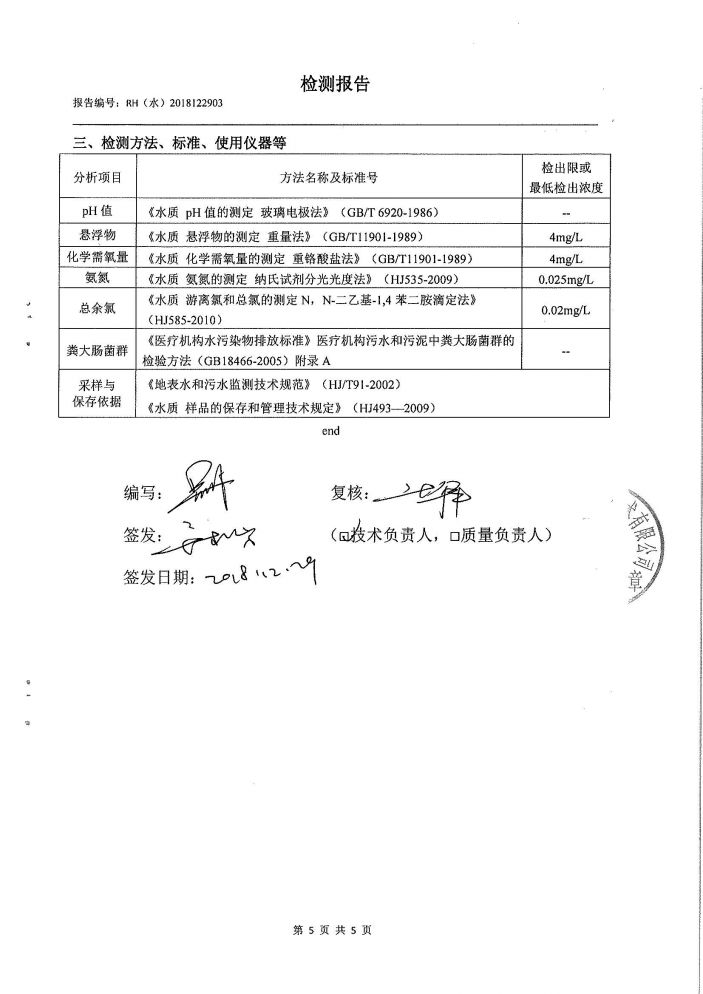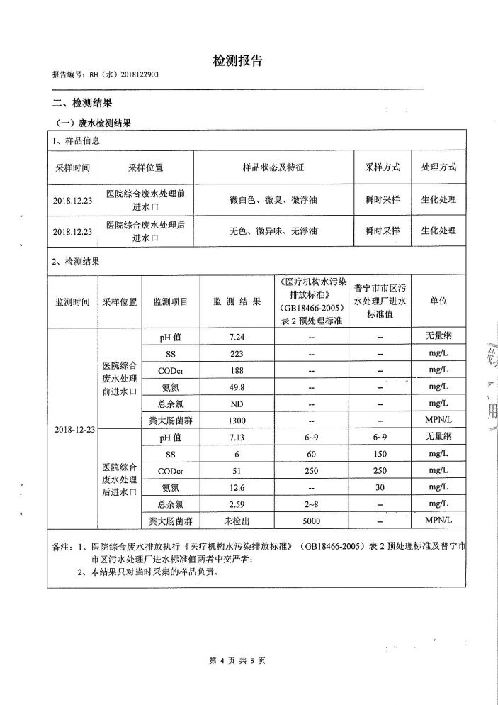 康美醫院2018年第四季度廢水檢測報告