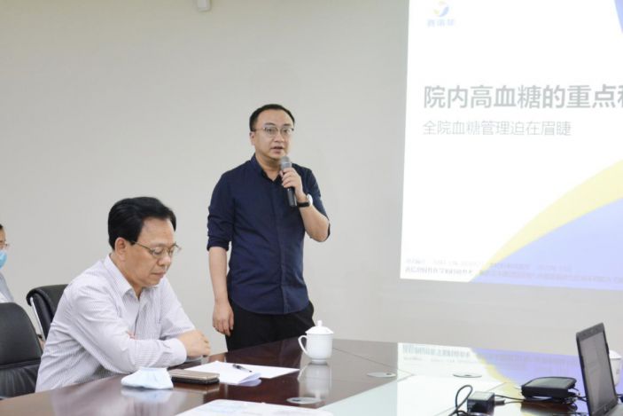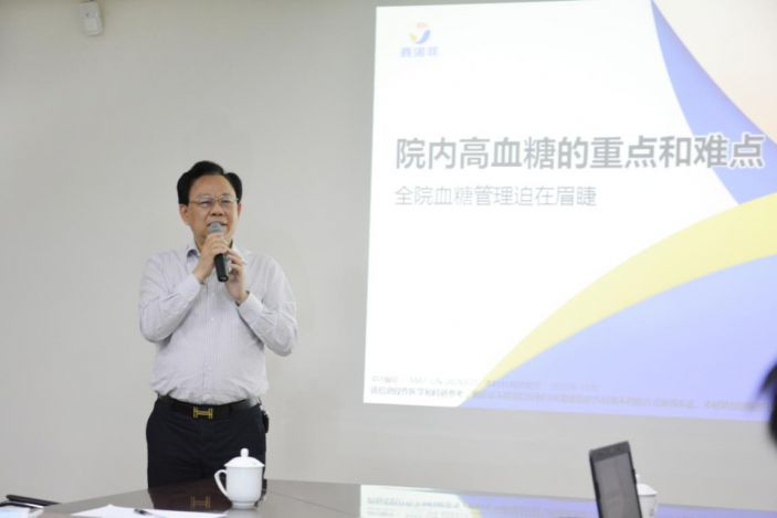 李教授首先在五樓行政會議室開展題爲《院内高血糖管理的重點和難點》的學術講座,副院長陳松深主持,各臨床科室派出醫療骨幹參加學習交流。
