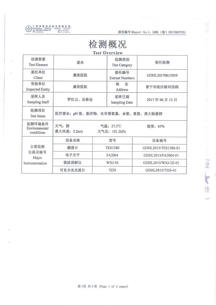 康美醫院2017年第二季度廢水檢測報告